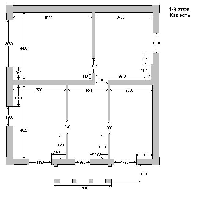 Размеры существующей пристройки указаны на рис.2, размеры расширенной пристройки - на рис. 3. Стена дома толщиной в 1,5 кирпича. Перекрытия первого этажа (без учета пристройки) – ж/б панели. Перекрытия второго этажа (без учета пристройки) – деревянные балки 20*20 см обшитые сверху досками, потолок второго этажа - дранка. Перекрытия в пристройке – деревянные доски. Боковые стены существующей пристройки толщиной в кирпич, фронтальная стена пристройки толщиной в полкирпича. Фундамент дома глубиной 1,2м состоит из ж/б блоков 2,4*0,6*0,4м. Фундамент пристройки глубиной 1,2м монолитный толщиной 0,4м. Стены пристройки не перевязаны со стеной дома. Дому около 20 лет. Расположен в Киево-Святошинском районе Киевской области. Грунт – суглинок 2-3 метра в глубину, глубже - песок. Участок относительно ровный с небольшими буграми.