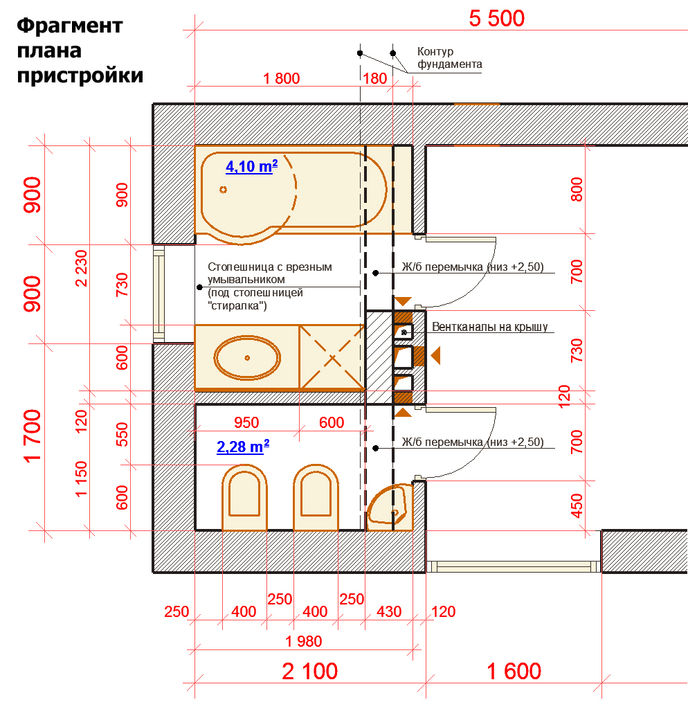 На первом рисунке внизу - вариант ванной комнаты, если делать новый фундамент. (Хочеться разделить перегородкой, чтоб ванной могли пользоваться два человека, т.е. один на горшке второй умывается).