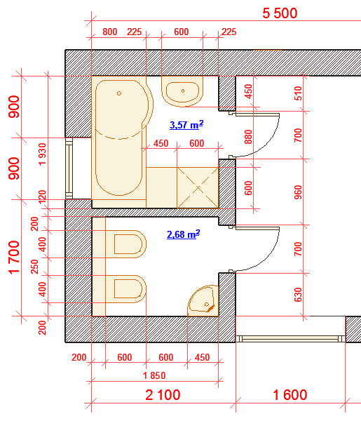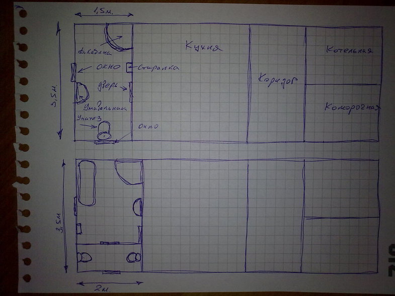Если уже настроились строить новый фундамент, то схема санузла может остаться та же, или поменяться (См. чертёж 2).