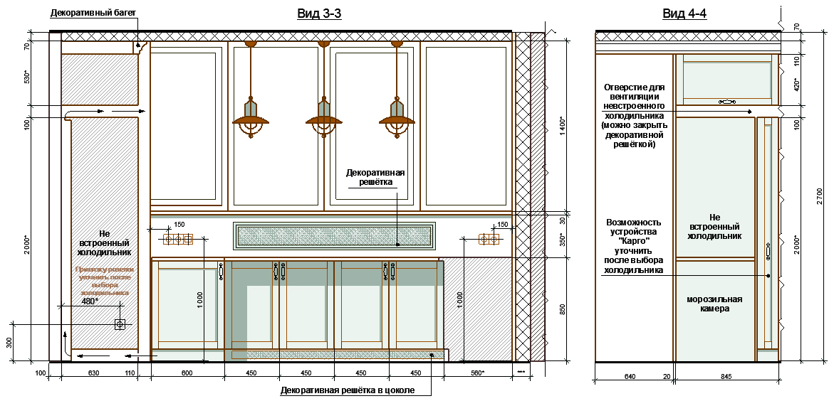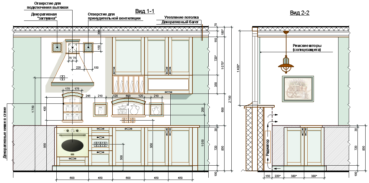 На чертеже 2,3 - развёртки стен кухни.