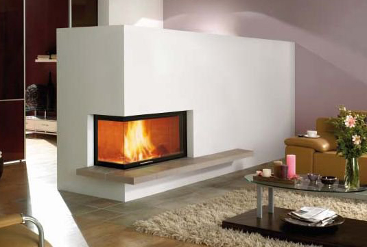 Из-за того, что гостиная имеет вытянутую форму, предлагается разбить её на две зоны: зона отдыха (каминная зона) и зона просмотра ТВ. Классическое решение, при котором камин располагается вдоль стены, в Вашем случае не подходит, т.к. мягкая мебель перед камином окажется на проходе, а это очень некомфортно.