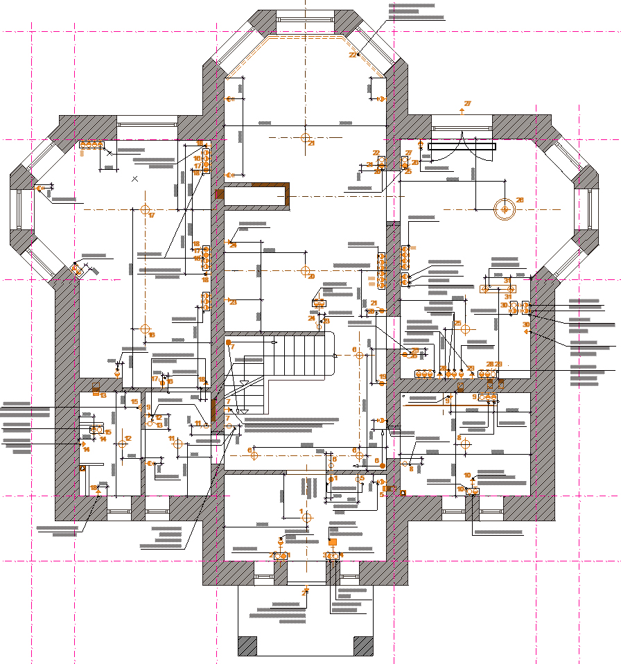 На первом рисунке - фрагмент плана размещения электроточек на 1ом этаже в формате jpg для ознакомления.