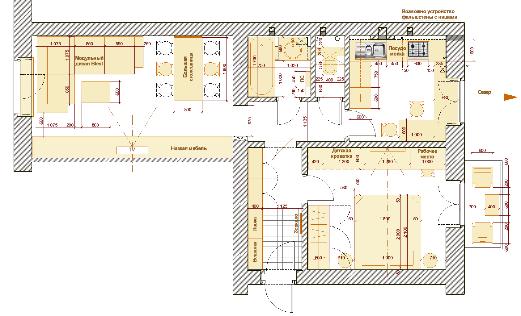 - побажання по меблям (ширина ліжка, письмовий стол, кутовий чи прямий диван, тощо)